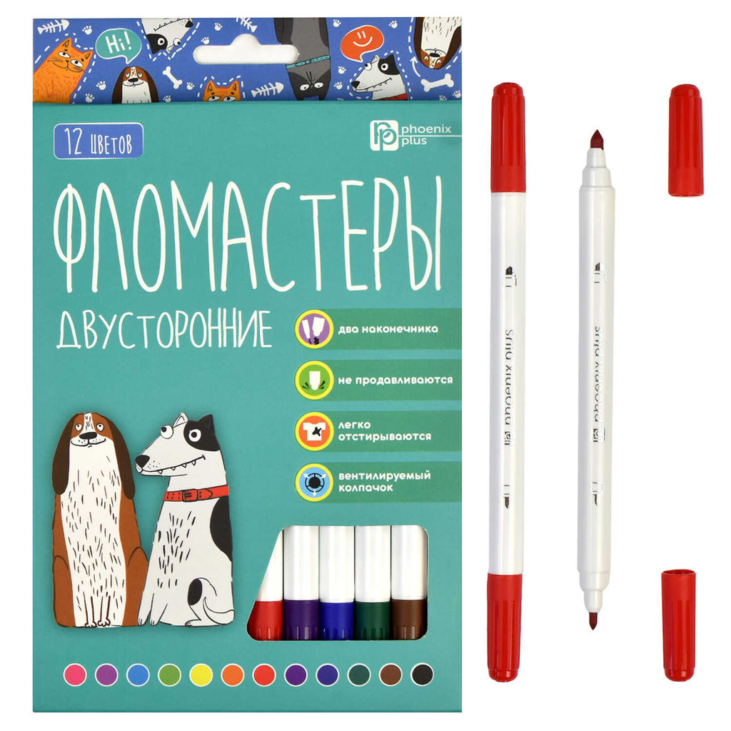 Набор фломастеров арт. 67876 / 12 АРТ-БРАТВА (12 цв., размер упаковки: 11,7х16,5х1 см, двусторонние,
