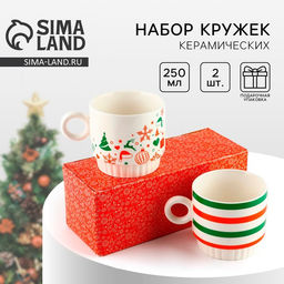 Кружки керамические «Новогоднее настроение», 250 мл, набор 2 шт.