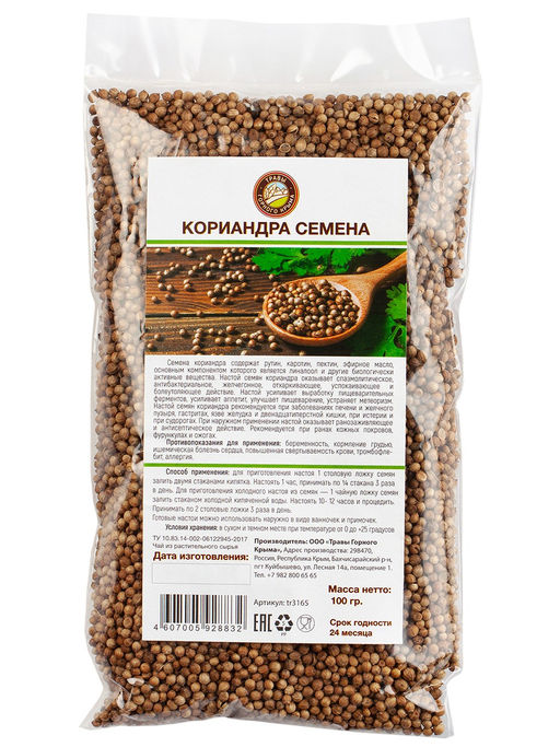 Семена кориандра содержат рутин, каротин, пектин, эфирное масло, основным компонентом которого является линалоол и другие биологически активные вещества.