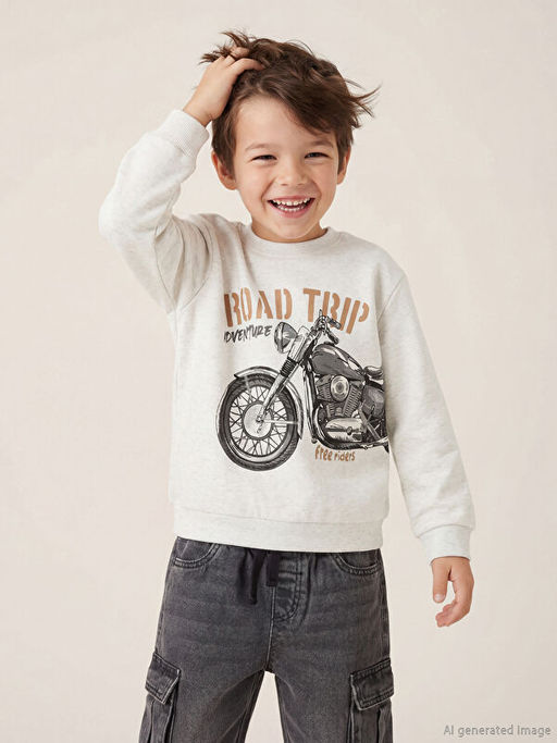 • Bask?l? Erkek ?ocuk Uzun Kollu Sweatshirt