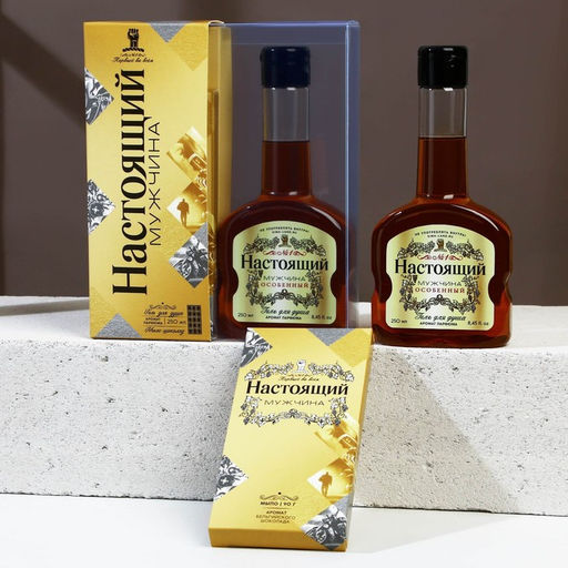 Набор: Да. Для кого: Для мужчины. В наборе, шт.: 2. Вес, г: 90. Объём, мл: 250. Вид упаковки: Пластиковая упаковка. Тематика праздника: Новый год. Тематика праздника: 23 Февраля. Тематика праздника: Универсальная тематика. Адресат: Коллеге. Адресат: Военному. Адресат: Другу. Аромат: Парфюм. Аромат: Шоколад. Тип: Твёрдое. Составляющие набора: Мыло. Составляющие набора: Гель для душа. Темпер. ограничение НЕ НИЖЕ ℃: 5. Темпер. ограничение НЕ ВЫШЕ ℃: 25. Возраст: Для взрослых. Назначение: Очищение, детокс. Форма выпуска: Флакон без дозатора. Бесплатная доставка: Да. Наша разработка: Да. Примечание: Дата изготовления зависит от партии поставки.. Примечание: Допустима заморозка. При оттаивании товар не теряет своих свойств.. Примечание: Хранение и транспортировка при температуре от +5 °C до +25 °C.