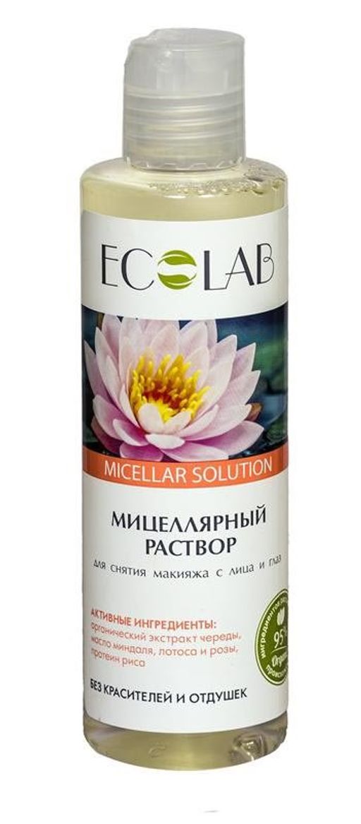 Мицеллярный раствор известного производителя экокосметики подходит даже для чувствительной кожи, обеспечивая деликатное снятие макияжа и с кожи лица, и с глаз. С его помощью вы сможете тщательно убрать остатки косметики, забывая о сухости и дискомфорте, возникающем при использовании очищающих средств других производителей. Положительные отзывы о мицеллярном растворе Ecolab подтверждают, что лучшего средства для снятия макияжа вам не найти.