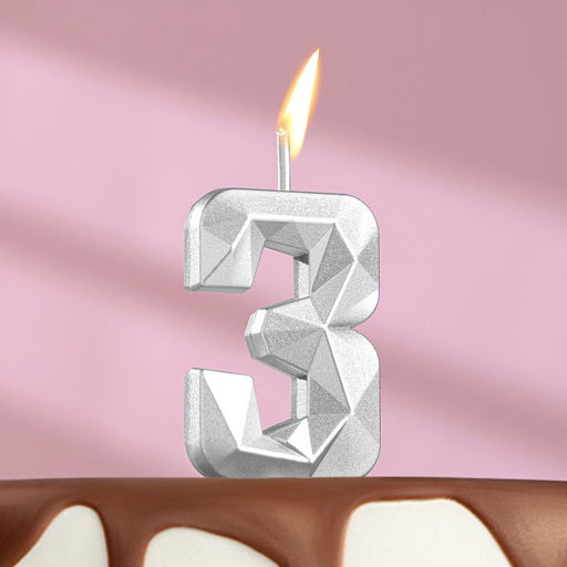 • Цена за 3 шт. Свеча в торт на шпажке «Алмаз», цифра 3, серебряная, 5×2.6 см
