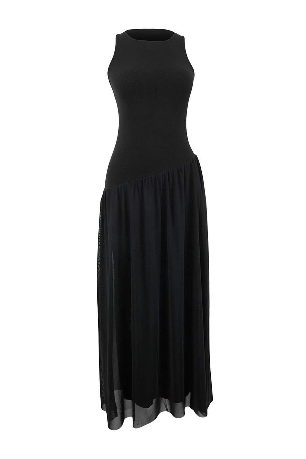 Siyah Belden Ac?lan Kolsuz Buzgulu Fitilli Esnek Orme Elbise TWOSS26EL00204