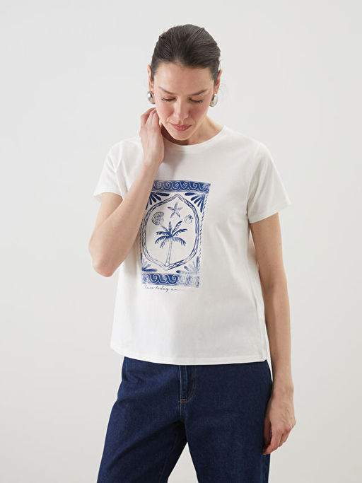 Bisiklet Yaka Bask?l? Kad?n Ti??rt