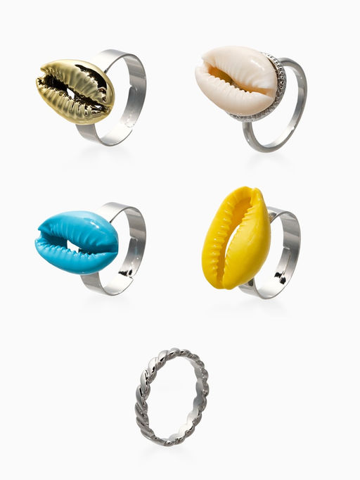 • Набор колец 5 шт "Новый стиль" ракушки, размер МИКС, цветные в  серебре