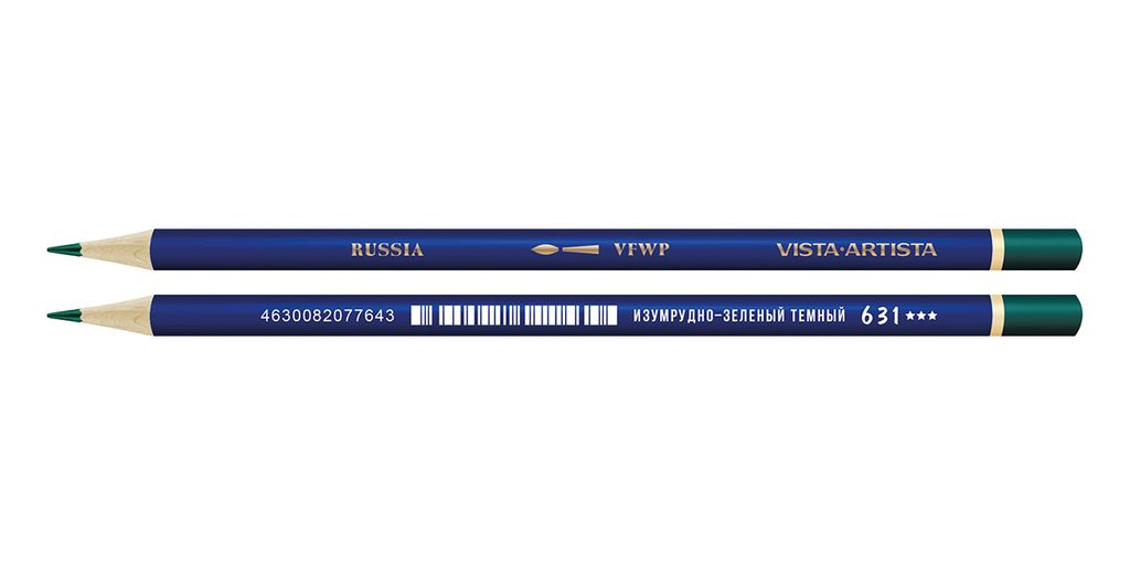 VISTA-ARTISTA Fine VFWP Акварельный карандаш заточенный 6 шт. 631 Изумрудно-зеленый темный (Emerald green dark)