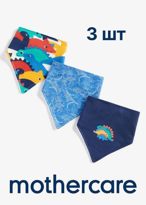 Экономичная упаковка из 3-х слюнявчиков-бандан с застежкой на кнопке и хорошо впитывающей задней сторонкой, выполненных из хлопка. Слюнявчики представлены в трех различных ярких дизайнах.