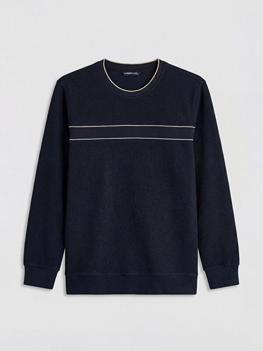 Bisiklet Yaka ?erit Detayl? Erkek Sweatshirt