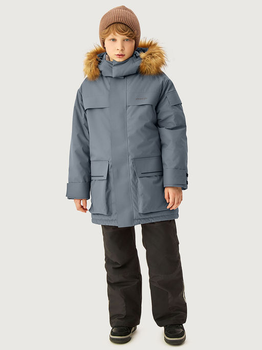 Размер: 152-76, 158-80, 164-84, 170-84 Сезон: ЗИМА Пол: Мальчик Категория товара: Куртки, парки Цвет: сталь Мембранная одежда: Да Ткань верха: МЕМБРАНА Teflon WR 5000/5000 (100% полиэстер) Подкладка: флис + п/э (100% полиэстер) Температурный режим: от 0С до -30 С Утеплитель: fiberlite 300гр Мех опушки: искусственный