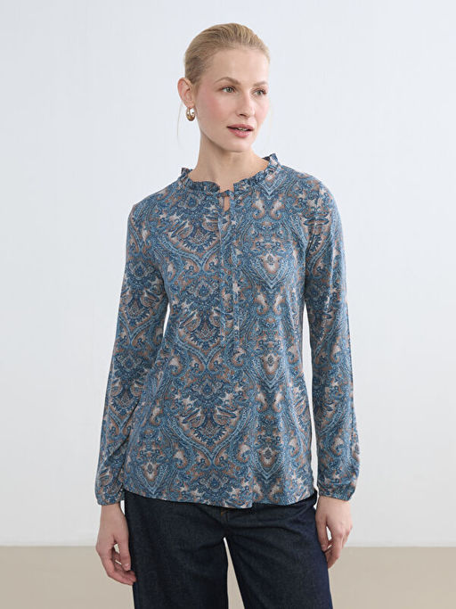 Ba?lamal? Yaka Desenli Bluz