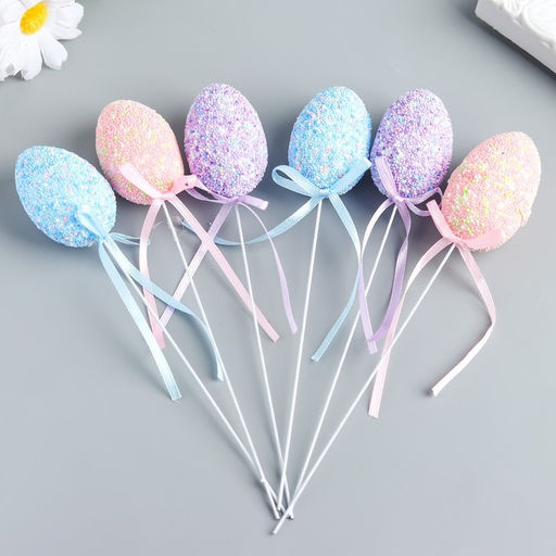 Цена за 2 шт. Набор топперов для украшения «Яйцо - бисер», 6 шт., разноцветные, 5×3×3 см