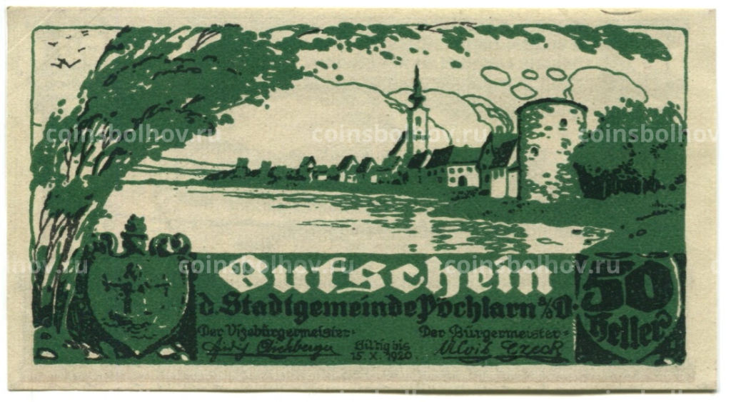 Банкнота 50 геллеров 1920 года Австрия Пёхларн (нотгельд)