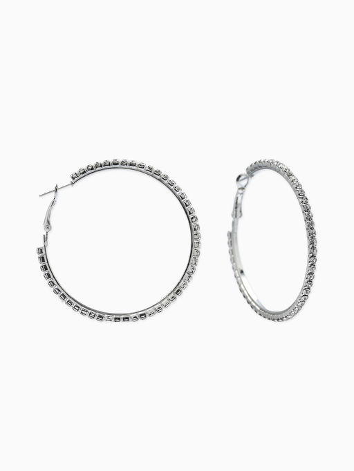 • Серьги-кольца со стразами d=5,5см, цвет белый в серебре