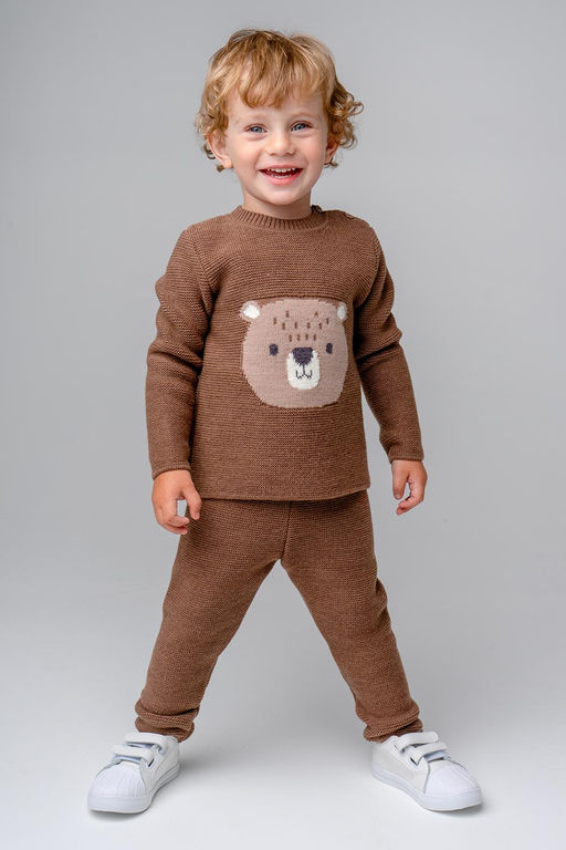 Теплый вязанный комплект из полушерстяной пряжи в состав которой входит шерсть австралийского мериноса. Связан двухизнаночной гладью. У изделия втачные рукава, связанные ластиком горловина и низ брюк. Для удобства джемпер застёгивается на плече на пуговицы. . Состав: 70% акрил, 30% шерсть