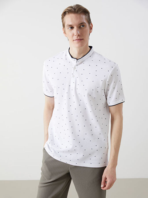 Hakim Yaka K?sa Kollu Desenli Erkek Ti??rt