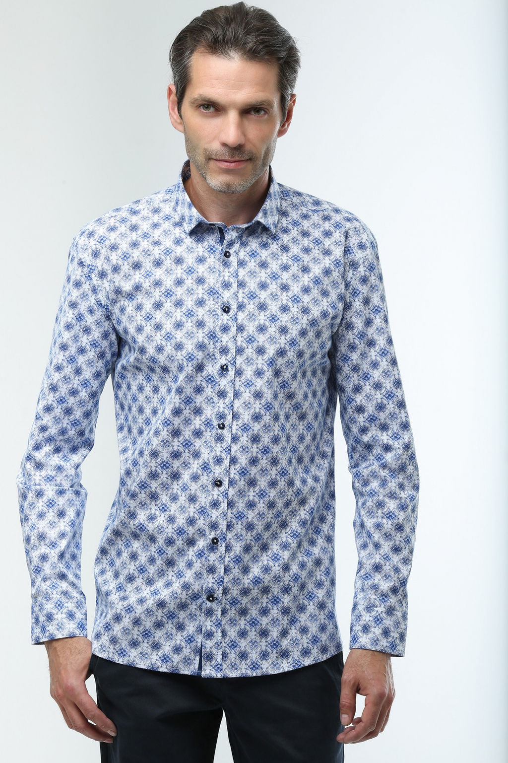 Бренд: Nicolo Angi Длина рукава рубашки: Длинный Карман: Без кармана Силуэт: Большие размеры (classic fit) Состав: 97% хлопок, 3% лайкра Стиль: Кэжуал Узор (рисунок): Абстрактный Цвет: Голубой