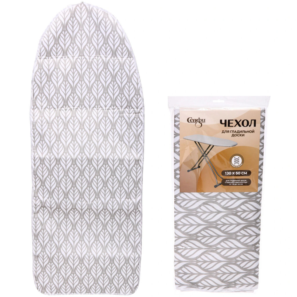 Чехол для гладильной доски, Листья, п/э, подклад поролон, на шнурке, 130*50 см­