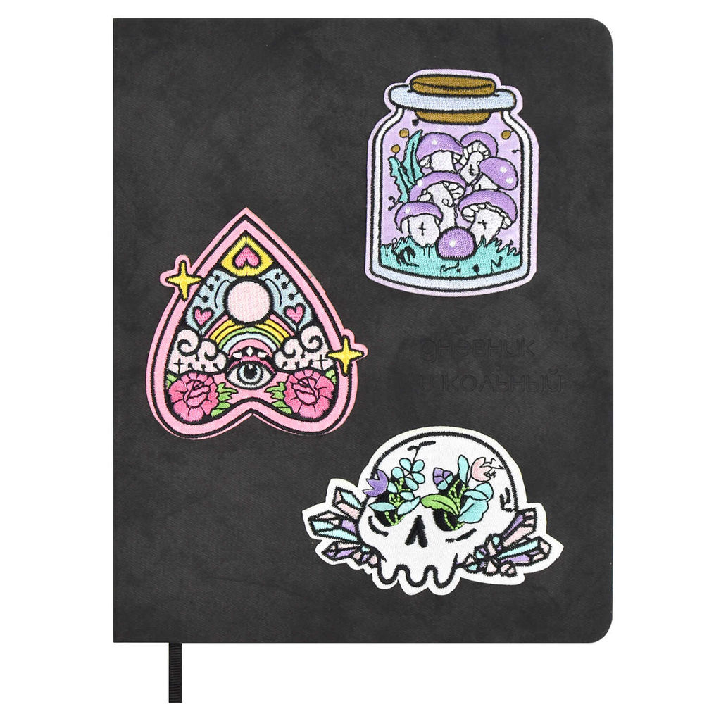 Дневник школьный арт. 66450 / 15 ВЕНЗДЕЙ (кожзам: А5+; твёрдый переплёт, материал обложки: искусственная кожа "Джинс"; декор: блинтовое тиснение, патчи текстильные полноцветные; способ крепления блока: ниткошвейный; вн. блок: 48 л., белый офсет 80 г/м?, печать в одну краску, справочный материал: универсальная шпаргалка; отделка среза: окрашивание пантоном; закладка: одно ляссе; форзац: печать пантоном; индивидуальная упаковка: ПЭТ-пакет)