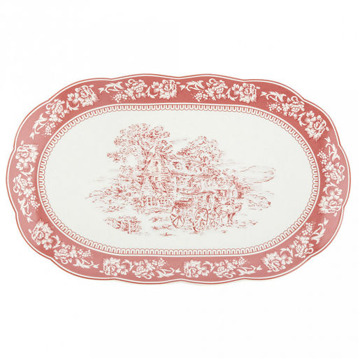 • "Сицилия Роза" Блюдо овальное фарфоровое 286х176х20мм, с деколью, волнистый край, отводка, в коробке (Китай)
