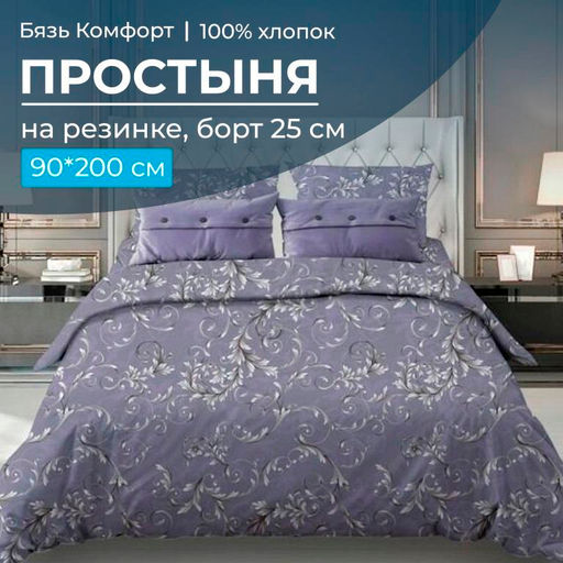 Артикул: Простыня на резинке 090*200 см, бязь "Комфорт 150 см", борт 25 см (Валенсия, сиреневый)
