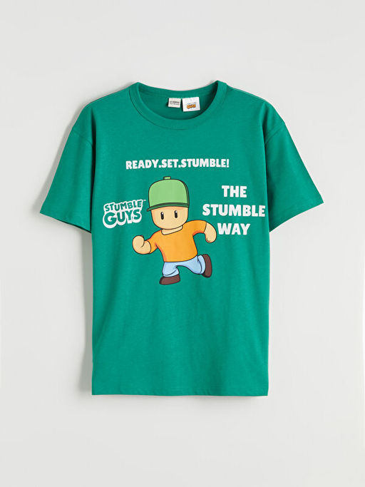 • Bisiklet Yaka Stumble Guys Bask?l? Erkek ?ocuk Ti??rt