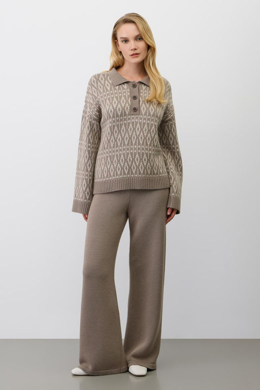 Мягкие брюки из премиальной пряжи, созданные с использованием инновационной технологии смешанного волокна. Уникальная технология производства позволила сформировать воздушную жаккардовую структуру, которая выглядит невероятно изысканно. Деликатное переплетение натуральной шерсти с современным акриловым волокном дарит непревзойденные тактильные ощущения..Состав: 50% шерсть, 50% акрил