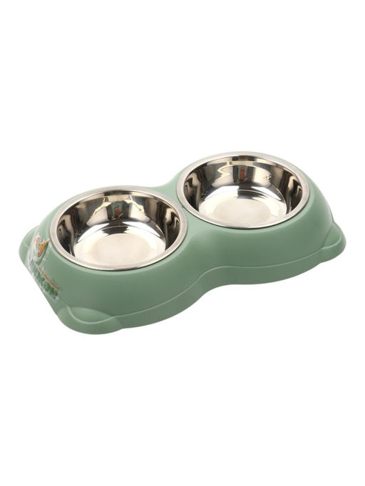 • Миска металлическая двойная на пластиковом основании, 26,3 х 16 х 3,9 см, зелёная