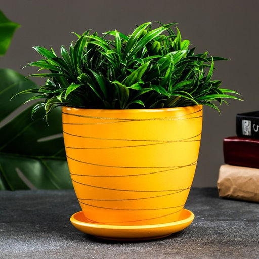 Горшок цветочный с поддоном 1,4 л, желтый, керамика, "Магнолия" (М)