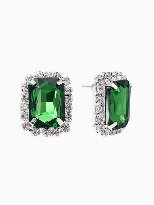 • Серьги со стразами "Роскошь", прямоугольник, цвет зелёно-белый в серебре