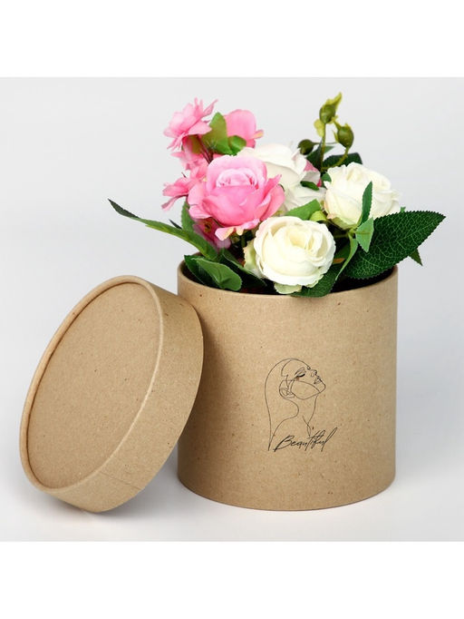 Коробка подарочная шляпная из крафта, упаковка, «Beautiful», 15 х 15 х 15 см