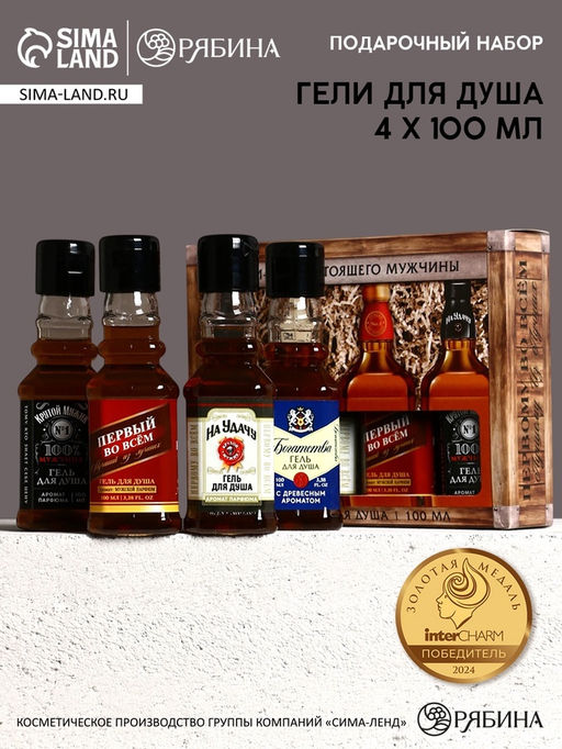 Подарочный набор Для настоящего мужчины, гель для душа во флаконах виски, 4?100 мл