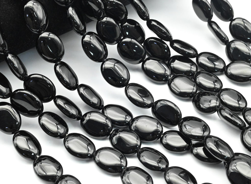 • Бусины из агата черного овал 12*16мм, 39см, 25 бусин Радуга камня