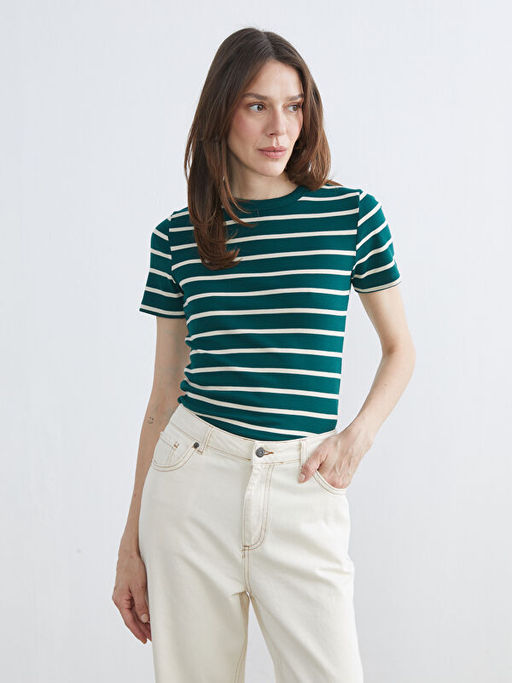 Bisiklet Yaka ?izgili Kad?n Body