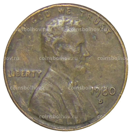 Монета 1 цент 1980 года D США