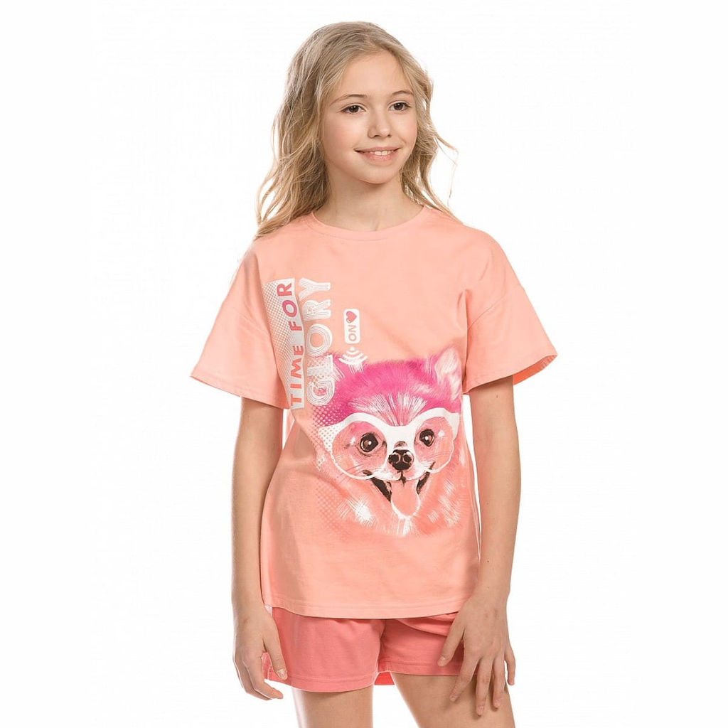 Цвет: персиковый Бренд: Pelican Пол: Девочки Производитель: Китай Сезон: лето Категория: Костюм летний Комплектация: 1 футболка, 1 шорты Уход за вещью: Стирать при температуре 40С Страна бренда: Россия Состав материала: 100% хлопок Замеры модели* * рост указан приблизительно, ориентируйтесь на замеры * Размер 116-6 (рост 116-122 см): длина футболки 43 см, полуобхват груди 33 см; длина шорт 26 см, полуобхват талии 25 см. * Размер 122-7 (рост 122-128 см): длина футболки 45 см, полуобхват груди 33 см; длина шорт 28 см, полуобхват талии 25 см. * Размер 128-8 (рост 128-134 см): длина футболки 47 см, полуобхват груди 36 см; длина шорт 28 см, полуобхват талии 26 см. * Размер 9 (рост 134-140 см): длина футболки 49 см, полуобхват груди 37 см; длина шорт 29 см, полуобхват талии 26 см. * Размер 10 (рост 140-146 см): длина футболки 51 см, полуобхват груди 38 см; длина шорт 30 см, полуобхват талии 27 см. * Размер 11 (рост 146-152 см): длина футболки 53 см, полуобхват груди 38 см; длина шорт 31 см, полуобхват талии 27 см. Комплект для девочек: футболка и шорты. Новая модель футболки! А - образный силуэт, короткие рукава расширены книзу, спущенное мягкое плечо, принт с блестящей "сахарной" посыпкой, перевод принта "Время славы". Шорты с защипами по переду и внутренней регулировкой объема.