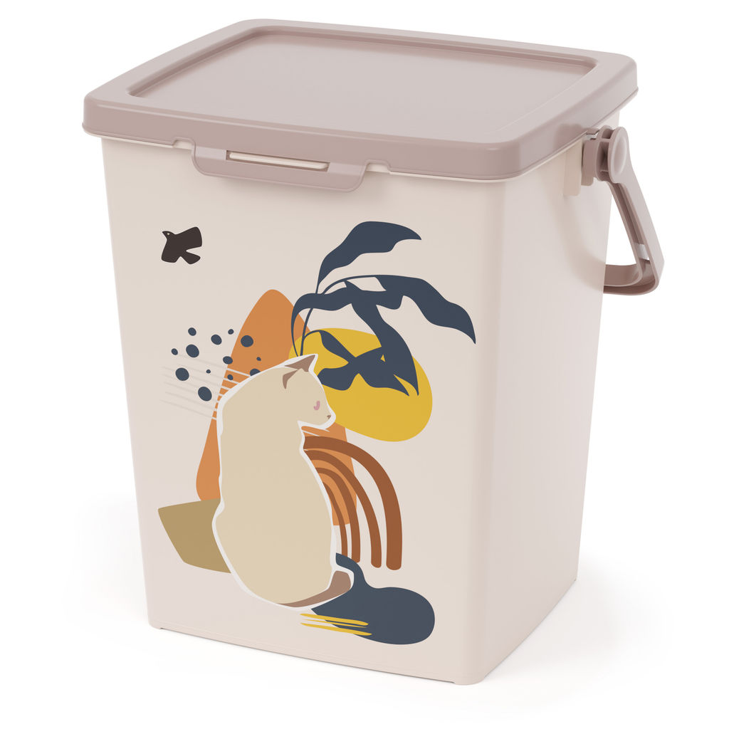 Контейнер предназначен для хранения корма домашних животных, вмещает от 2,5 до 4 кг сухого корма в зависимости от плотности и размера гранул. Основное преимущество заключается в том, что если ручка расположена спереди, то контейнер заблокирован и его не открыть. Если ручка сзади, то крышку можно открыть и накормить вашего любимого питомца!
