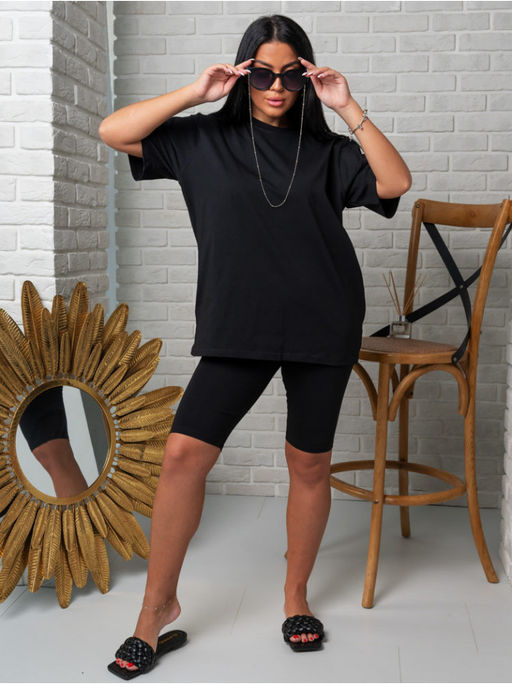 Стильный и удобный повседневный спортивный костюм с велосипедками из плотного трикотажа. Велосипедки не просвечивают. Мягкий хлопковый материал с добавлением полиэстера, производства Турция, не дает усадку после стирки и не линяет, поэтому вещи можно стирать в стиральной машинке в режиме бережной стирки при 30 градусах. Костюм с обтягивающими облегающими шортами можно носить как домашний комплект, для занятий спортом в спортзале, прогулок, езды на велосипеде, для физкультуры в школу и для тренировок. Футболка oversize и короткие спортивные велосипедки с высокой талией.­