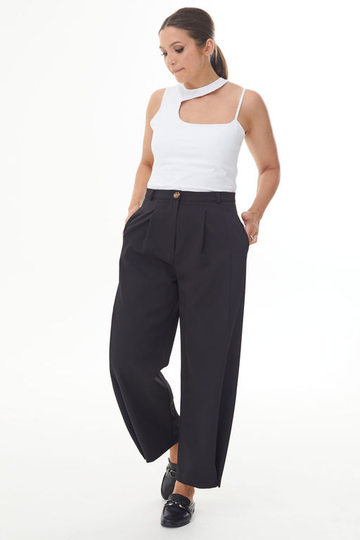 Черные брюки широкие с защипом внизу на пуговицу­
