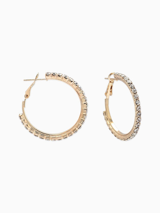 Цена за 2 шт. Серьги-кольца со стразами d=3,5см, цвет белый в золоте