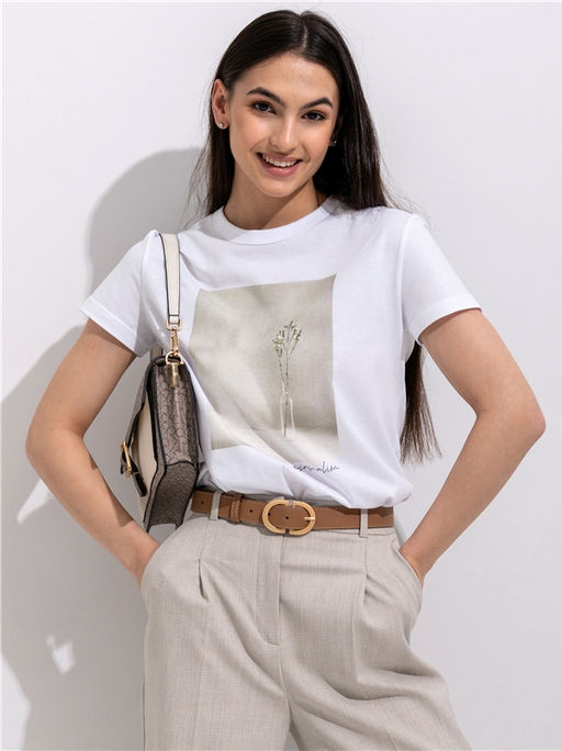 футболка,хлопок 100%,кулир / хлопок 100%,белый / - / Веточка в вазе / - / - / -,Футболка выполнена из легкого хлопкового полотна. Изделие свободного покроя с короткими рукавами и округлым вырезом горловины, украшено дизайнерским принтом. Уход: только машинная стирка (руками не стирать!) при температуре 40 градусов, без предварительного замачивания. Изделия с печатью перед стиркой необходимо вывернуть на изнаночную сторону.