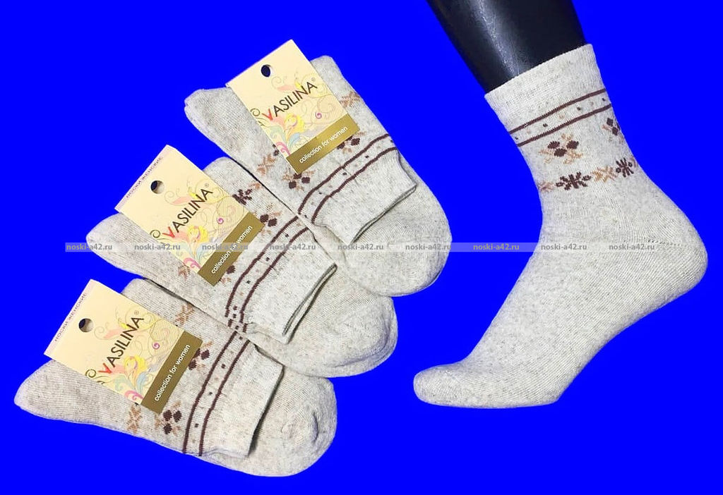 • Цена за 10 пар. Василина носки женские внутри махра лен