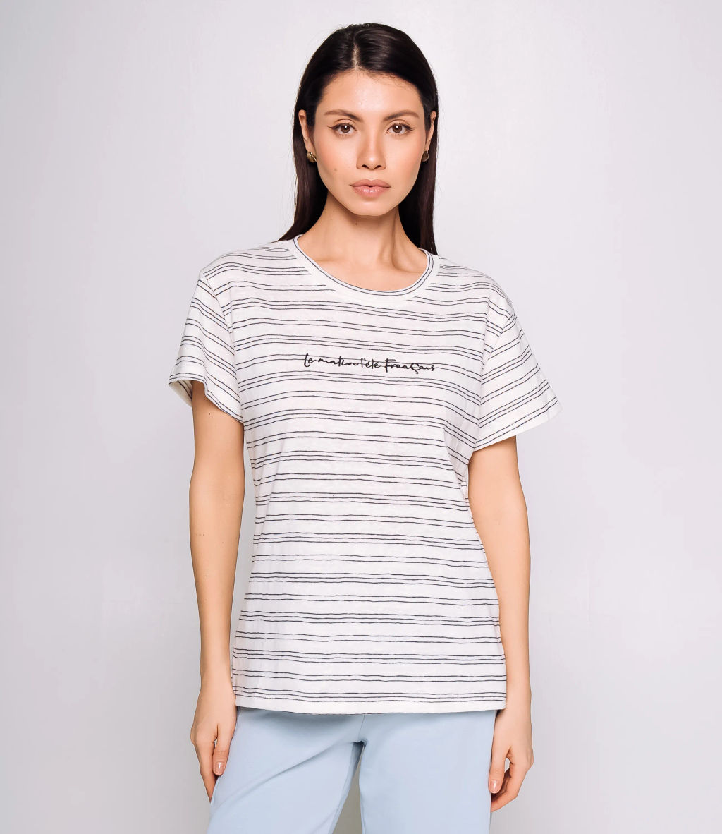 Футболка - это вещь, которая выделяет и подчеркивает уникальность каждой представительницы прекрасного пола.Классическая хлопковая футболка прямого силуэта с круглым вырезом горловины, короткими рукавами стандартной длины и умеренной посадкой по фигуре; выполнена из тонкого мягкого трикотажа. На уровне груди нанесён небольшой контрастный принт в виде рукописной надписи, внутренняя отделка чистая без выступающих нитей, изделие лёгкое, дышащее и подходит для повседневного образа. Изделие из 65% хлопок и 35% полиэстера сохранит свою первоначальную привлекательность даже после многих стирок. Вы будете его носить с большим удовольствием. Обратите внимание на цвет - он является насыщенным и полностью соответствует фотографии на сайте. Чтобы вы не сомневались в размере, мы предоставили на странице таблицу. Воспользовавшись ею, вы сможете сами сделать мерки и убедиться. Установленная нами цена является доступной и адекватной. Подарите себе удовольствие быть элегантной и неповторимой с нашей футболкой! -- Характеристики -- Цвет: белый, cиний Пол: Женский Страна производитель: Китай Сезон: Всесезонный Материал: Хлопок, Полиэстер