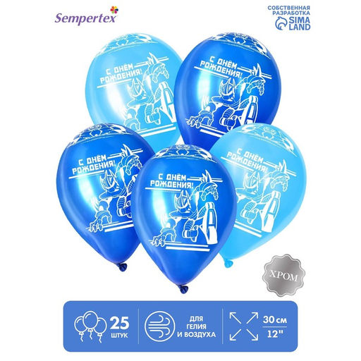 • Шар латексный 12" «С Днём Рождения», для мальчика, набор 25 шт., цвет голубой, син., ХРОМ