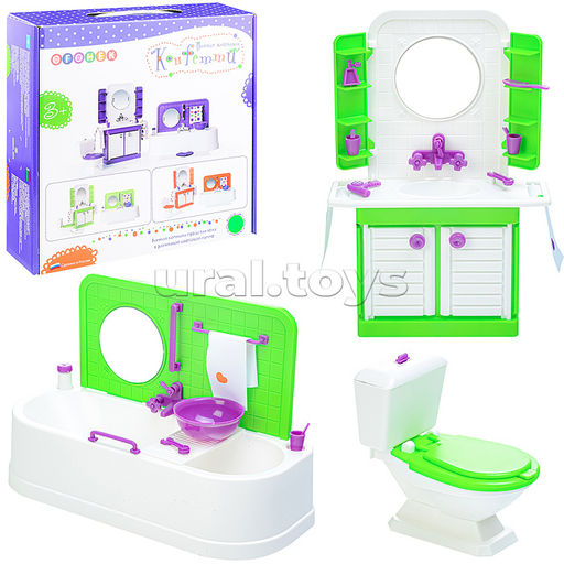 Набор мебели Ванная комната Конфетти помогает освоить новые модели поведения, привить ребёнку в игровой форме правила личной гигиены, научиться следить за порядком и чистотой, социально адаптироваться в обществе.
