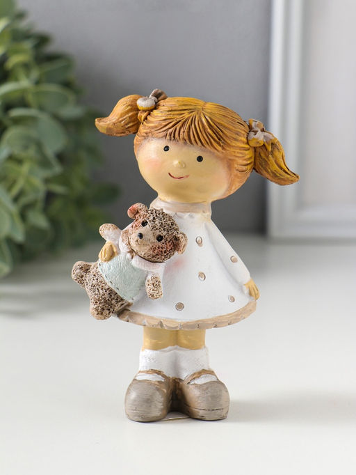 • Фигурка полистоун «Девочка с хвостиками в белом платье в горох, с барашком», 6.5×5×10 см