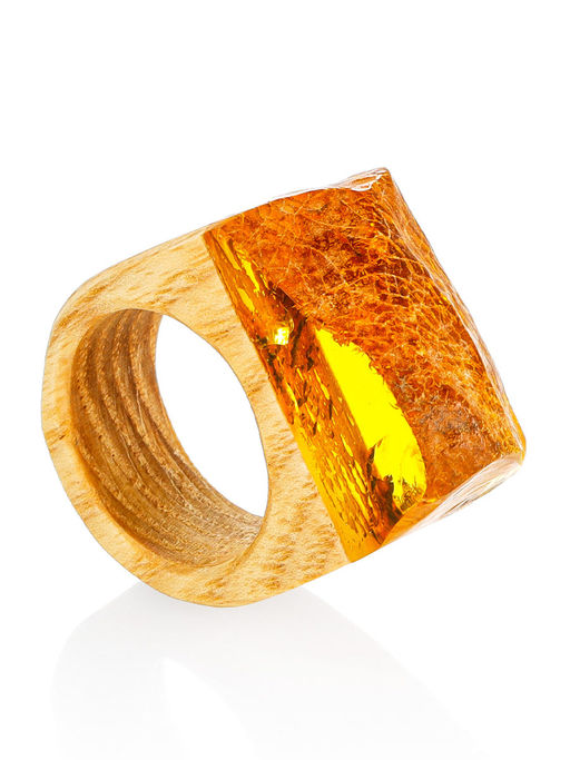 • Кольцо Индонезия из дерева и натурального цельного янтаря