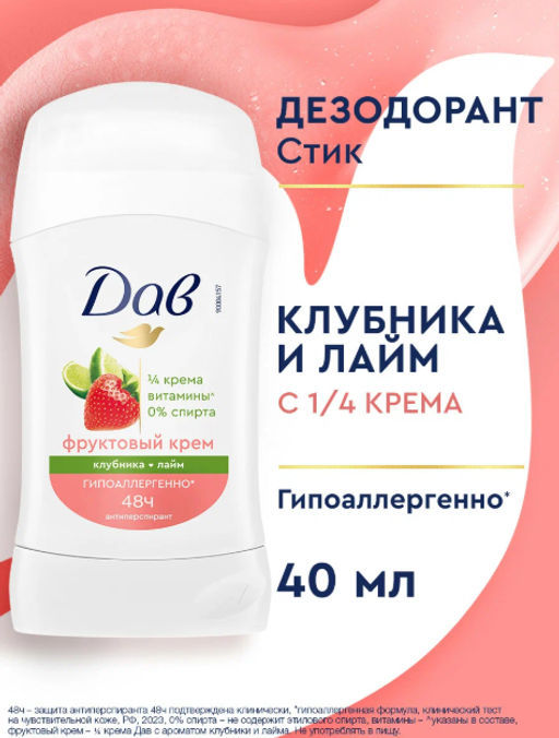 • ДАВ дезодорант-стик Клубника и лайм 40мл