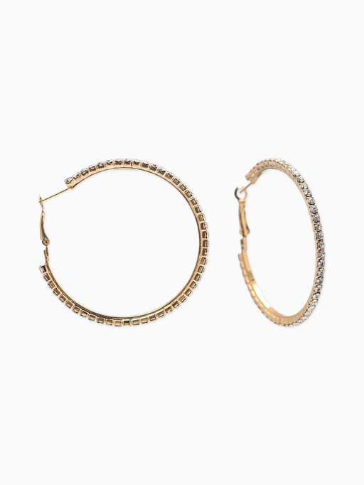 • Серьги-кольца со стразами d=5,5см, цвет белый в золоте
