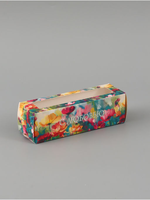 Цена за 5 шт. Коробка подарочная с окном «С любовью. Цветы», 18×5.5×5.5 см, самосборная